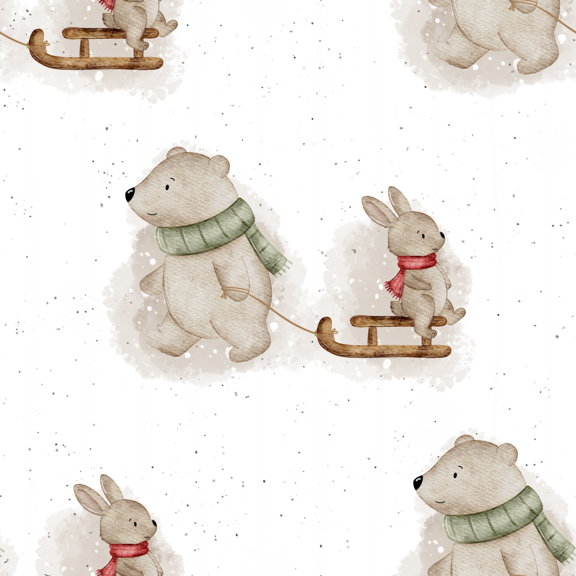 Eisbär & Hase fahren Schlitten - French Terry