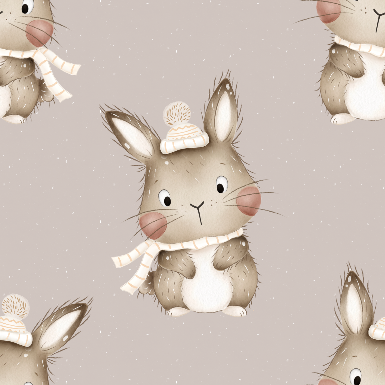 Winter Häschen mit Mütze taupe - French Terry