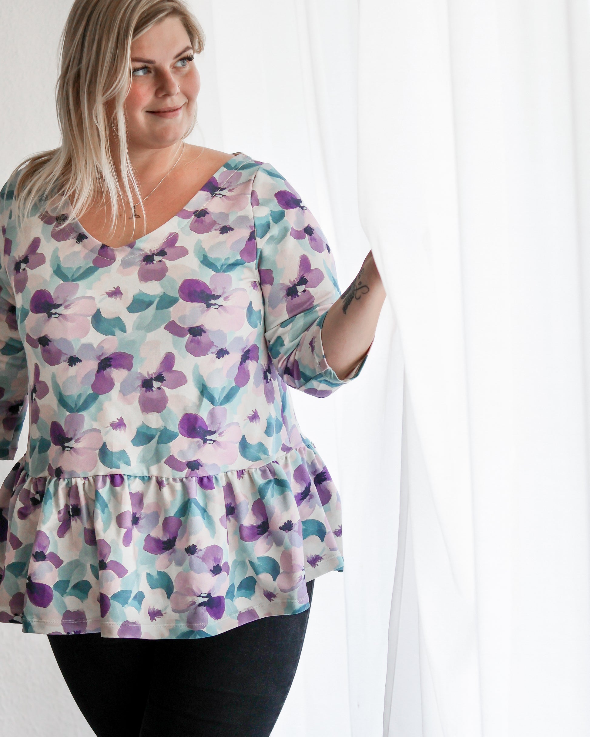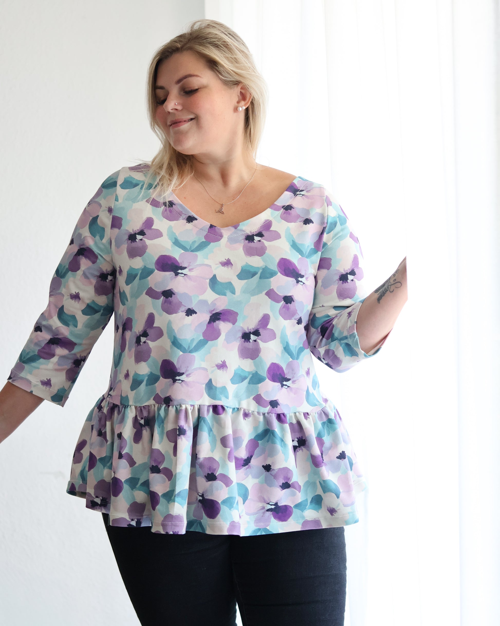 Big Flowers lavendel/teal - French Terry